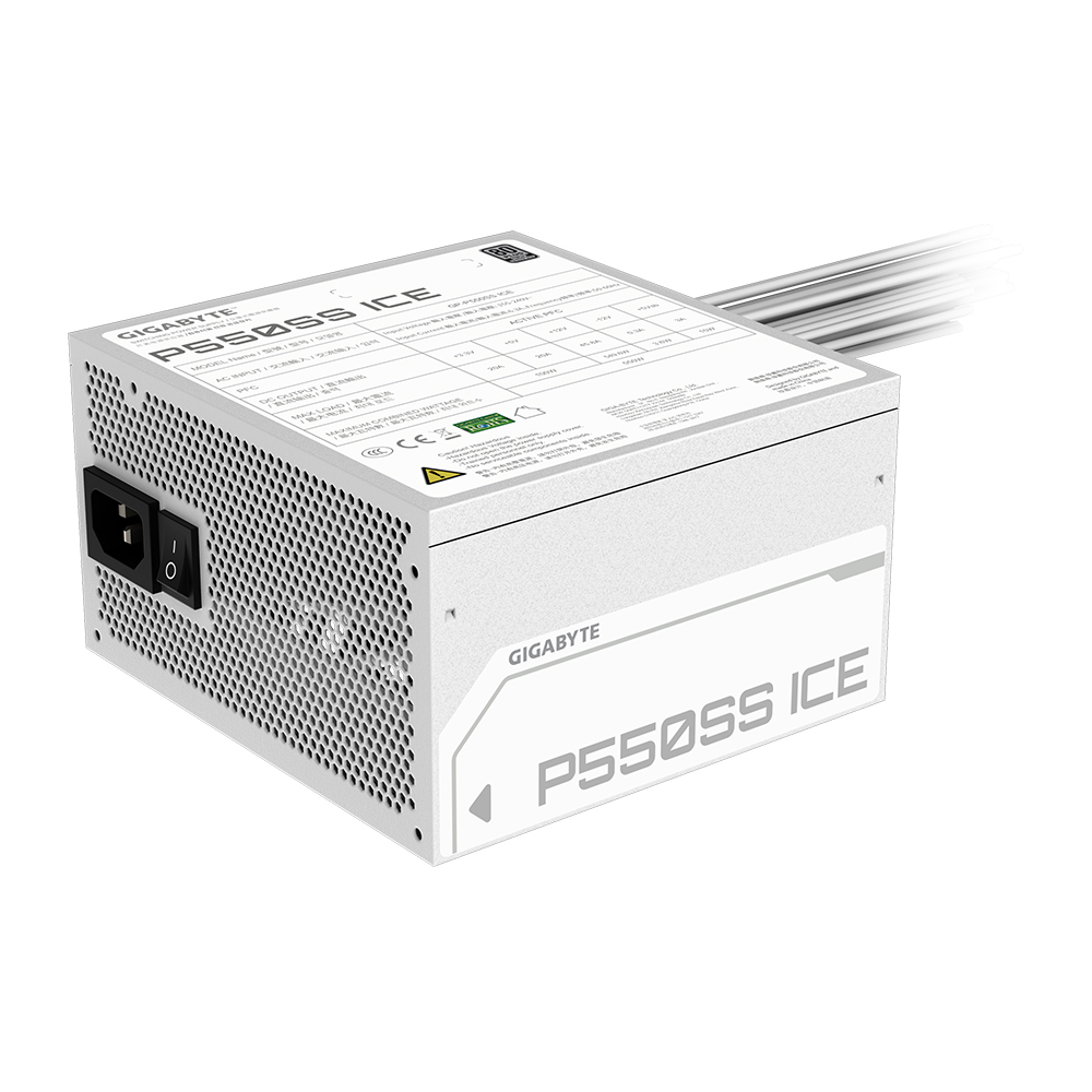 Gigabyte P550SS ICE е напојување од 550W, кое нуди добар баланс помеѓу изглед, функционалност и ефикасност. Моделот е дизајниран со „Ice white aesthetics“ — бел дизајн, што го прави визуелно привлечен за системи со побела или светла шема.