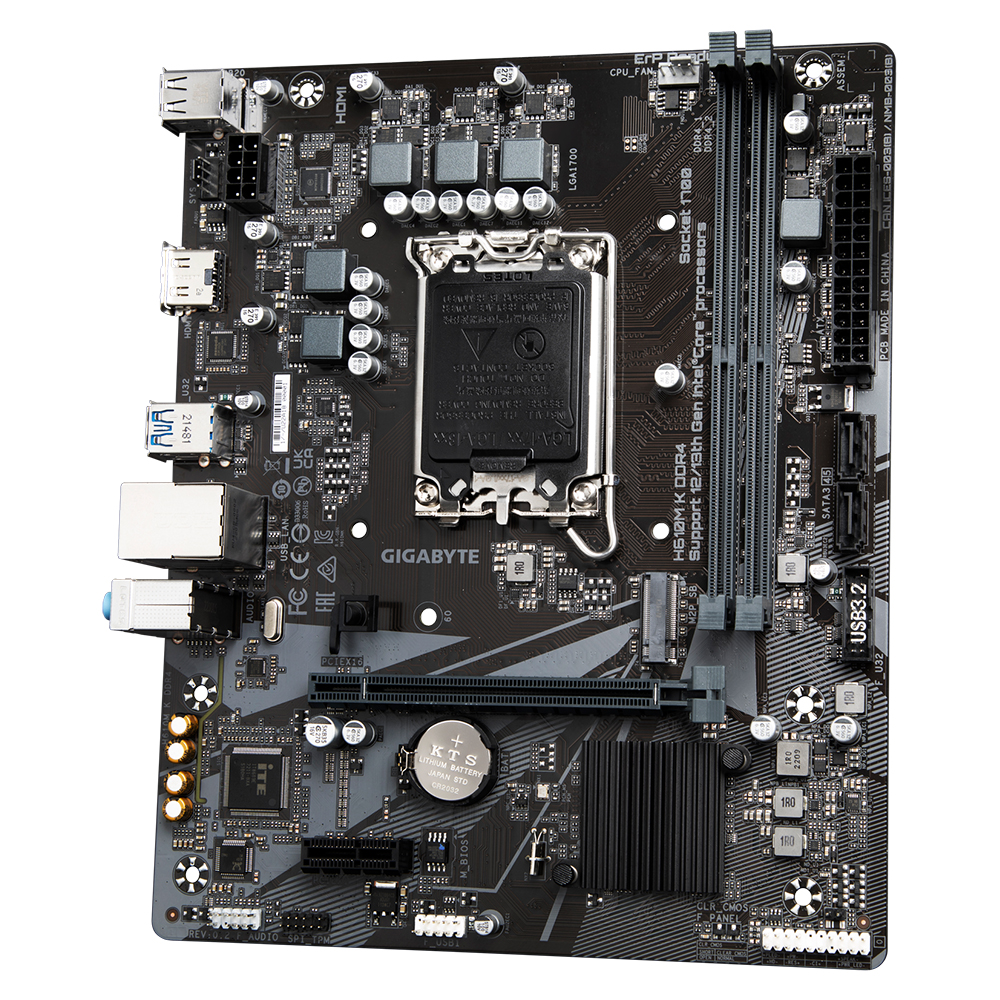 Плочата располага со еден PCIe 4.0 x16 слот за графичка картичка, еден PCIe 3.0 x1 слот за дополнителни проширувања, како и M.2 слот за NVMe SSD и две SATA III порти за класични SSD или HDD дискови. На задниот панел ќе најдеш HDMI 2.1 излез за поддршка на 4K резолуција, USB 3.2 Gen1 порти за брзи периферии, како и стабилна Gigabit LAN конекција за брзо и сигурно интернет поврзување.