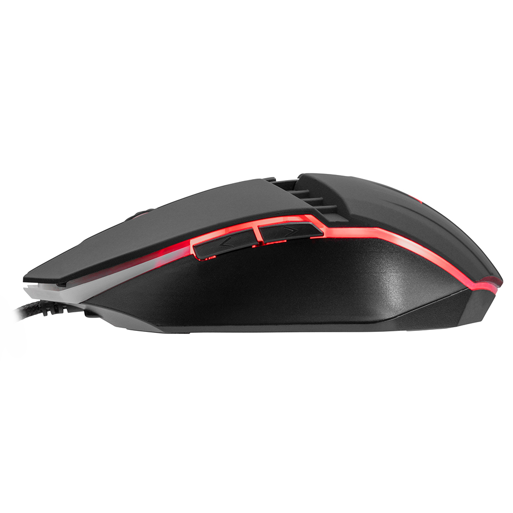 Мишот има 7 копчиња, вклучувајќи DPI прекинувач и скрол точак, а дополнително е збогатен со LED осветлување за модерен изглед. Со USB кабел долг 1,5 метар, обезбедува стабилна и издржлива врска.
